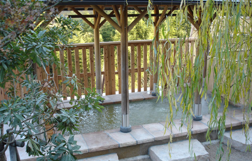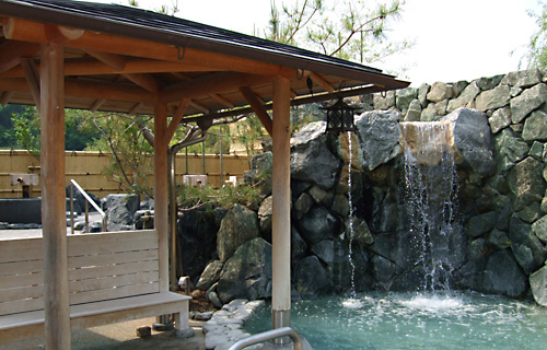 岩造り「幸の湯」は滝になっている。つぎはこっちかな。