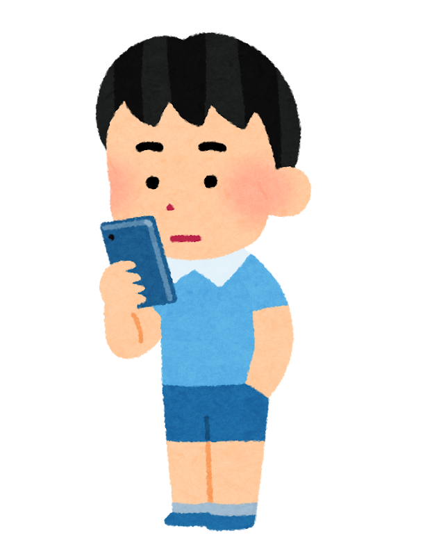 スマホは横持ちしていてスマホにのめりこんでいる。